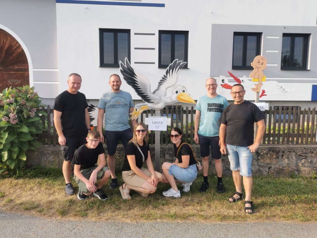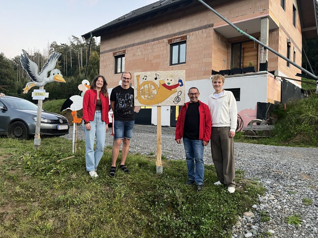 Am Samstag durften wir unserem Flügelhornisten Andi und seiner Regina zu ihrem Nachwuchs gratulieren! So schnappten wir unseren Musi-Storch und ...